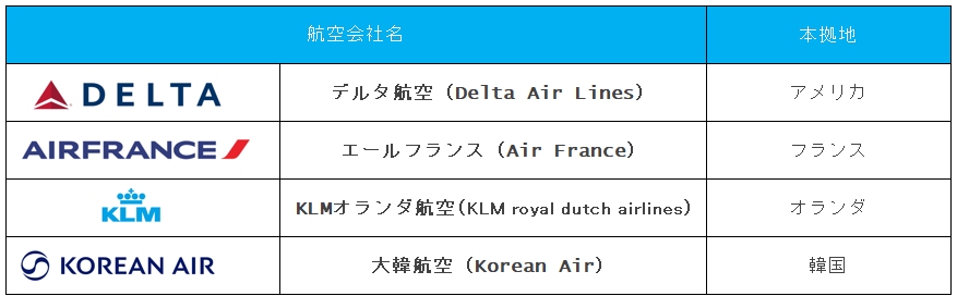 スカイチームは2000年に設立されたアライアンスで、デルタ航空(米)、エールフランス(仏)、大韓航空(韓)などが加盟。
