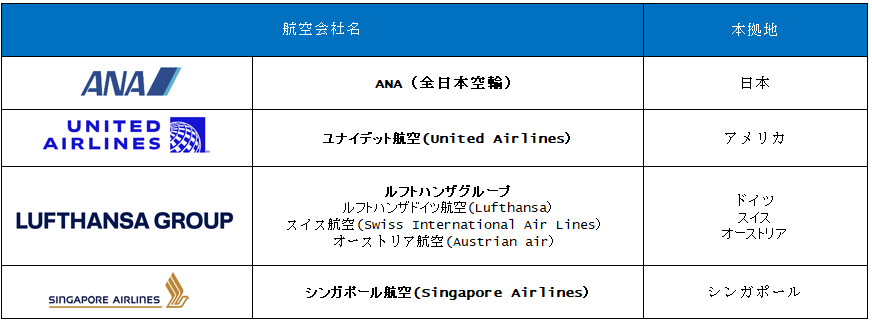 加盟会社にはユナイテッド航空(米)、ルフトハンザ航空(独)、シンガポール航空(星)などがあり、世界190か国以上にネットワークを展開しています。